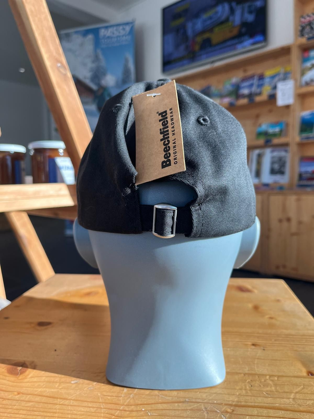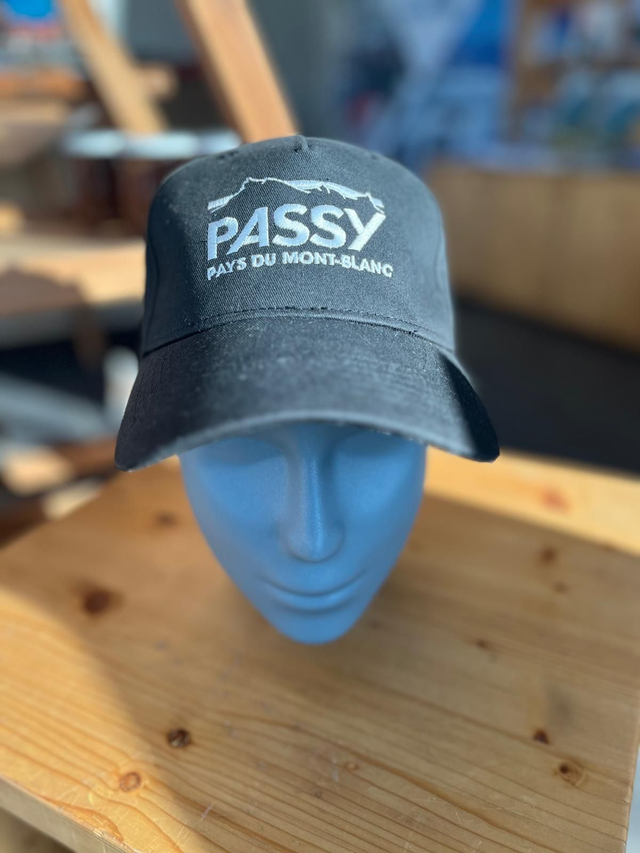 Casquette en tissu noire, logotée "Passy Pays du Mont-Blanc".